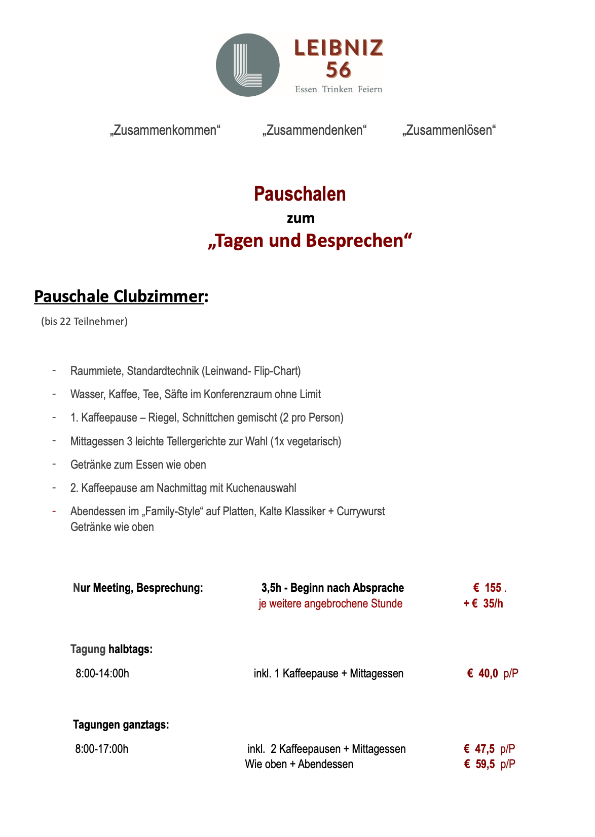 We would be happy to discuss all the details with you personally on site in advance and offer you many individual options and solutions for your successful event.